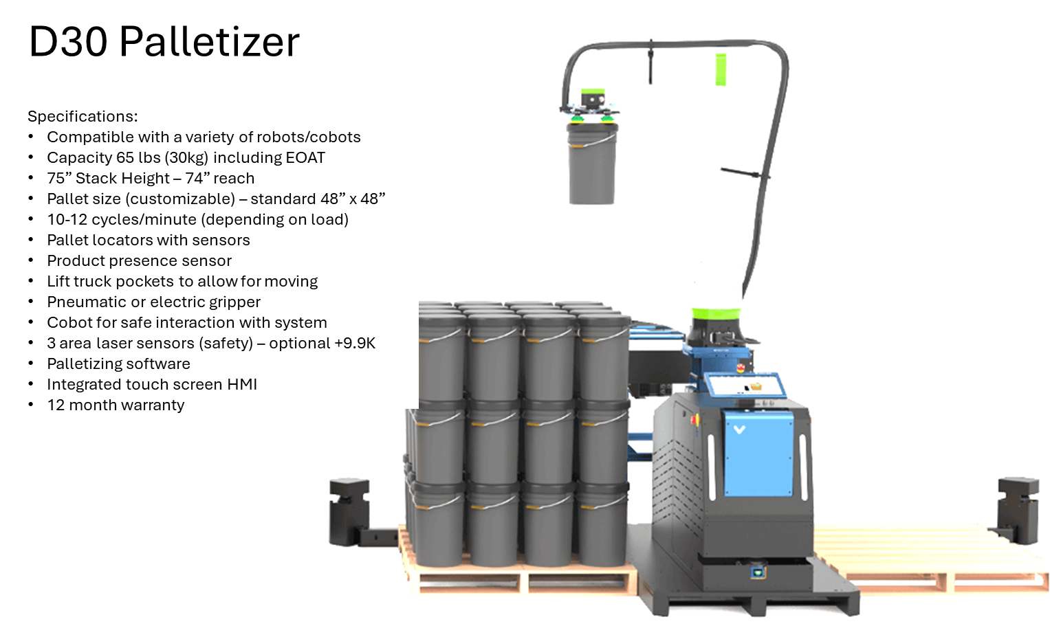 The platform-based approach ensures quick setup and minimal downtime, making automated palletizing accessible to more businesses. The standardized design allows straightforward