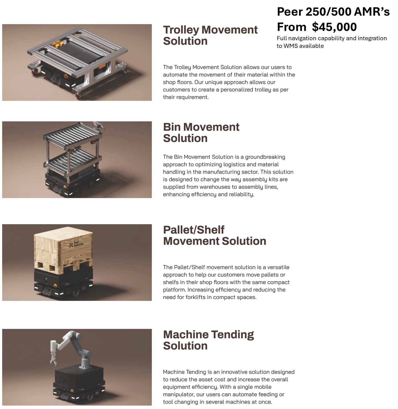 • AMR's with Arms - Pick and move, Machine Tending